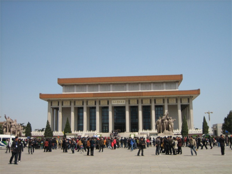 I thought the whole experience would be creepy but when inside I just thought of how the mummy was unnaturally real and untouched – that’s all.  It just seemed like chairman Mao was just sleeping peacefully under the thick red blanket embodied with the hammer and the wheat cutting instrument which English name escapes my memory right now …maybe a bit orange rather than yellow… but it wasn’t creepy at all – at least not until we got out and started processing the experience.