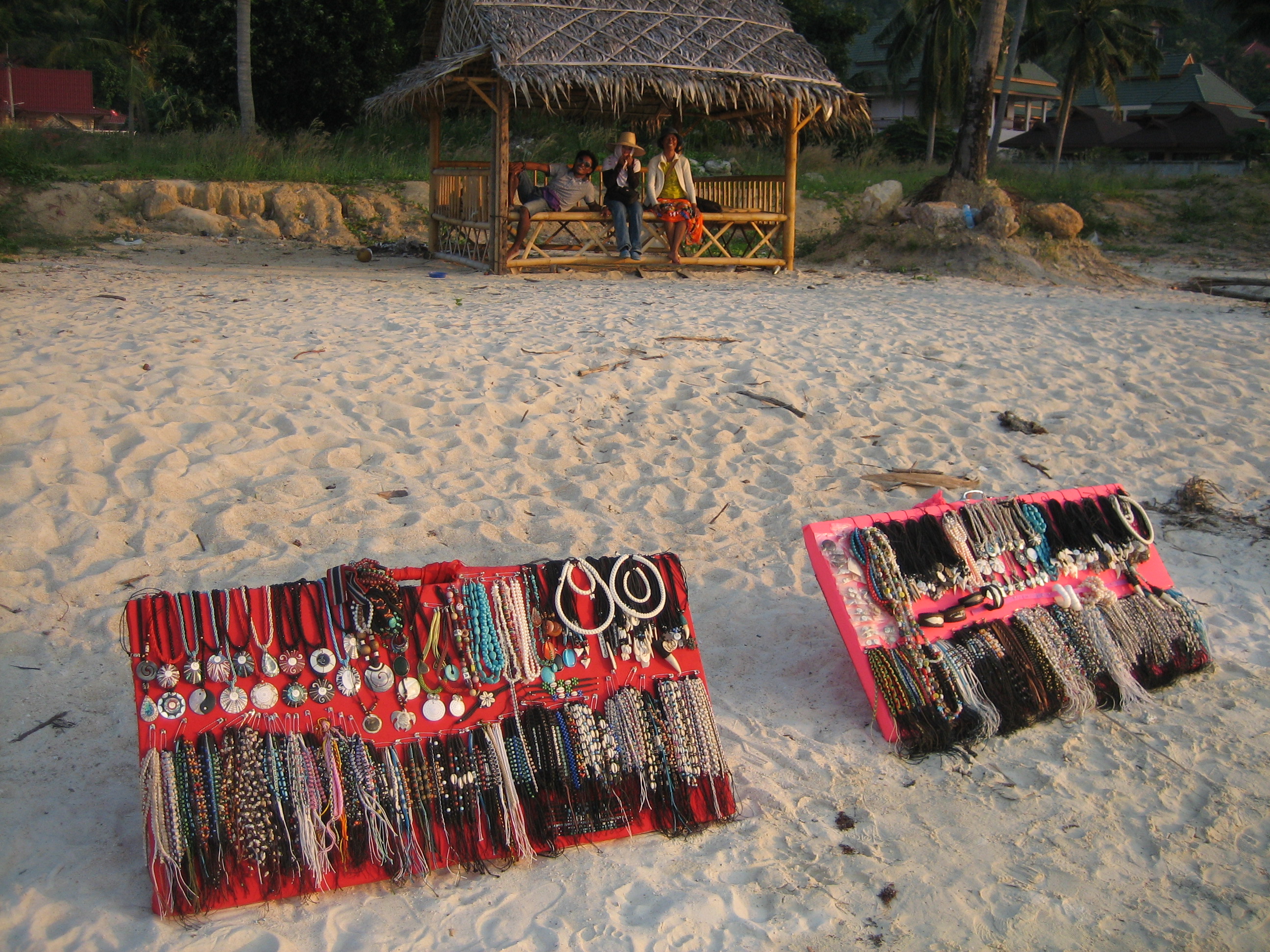 The other thing that has bothered us greatly is that we haven’t been able to bling our selves up. Any descent backpacker that has been in Thailand more than a week has multiple layers of bracelets and necklaces made of leather, shells, coconuts, fish bones and what not around their necks, wrists and ankles. Somehow we have not been able to follow this trend but are anxious to make up for it and will keep you updated. The next steps in the backpacking transformation are dreadlocks and huge tattoos …we’ll start with the bracelets and necklaces and take it from there.