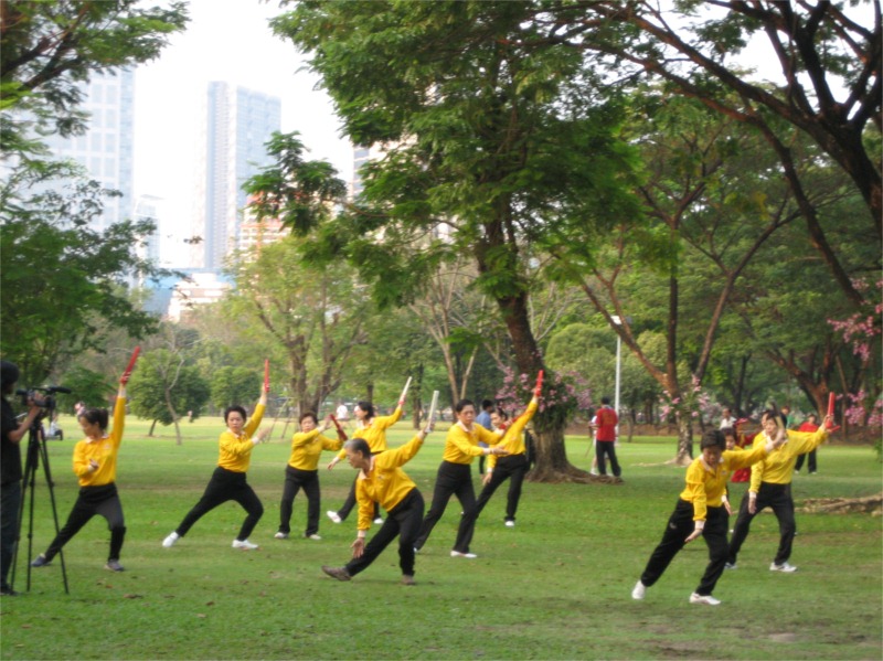 We went to Lumphini Park, a public park close by, and lounged for a few hours.  The park had a lake that was filled with some sort of swimming dragons that were about one and a half meter in length and tortoises and fish.  In the afternoon the park started to fill up with runners and ladies doing aerobics and Tai Tsi that was open to everyone.  Twice during the day they stared playing the national anthem and everyone stopped what ever they were doing and just stood straight to show respect.  This happened as well when we went to the movies, before the movie started everyone stood up and they played a movie showing the king’s life under the national anthem.