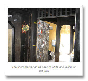 We have been into a few of the old houses and even though nothing is quite spectacular, everything is very cozy and nice.  There is one thing worth mentioning that puts a big mark on the houses here.  Hoi An is build next to a big river so every year during the rainy season, there is a flood and the river grows enormously.  Therefore every house is on two floors so that people can move all the furniture and other stuff from the ground floor up to the second.  In most years the flood is modest and might not even get into the houses but in others the flood can be as much as two meters high up in the the houses on the river bank.