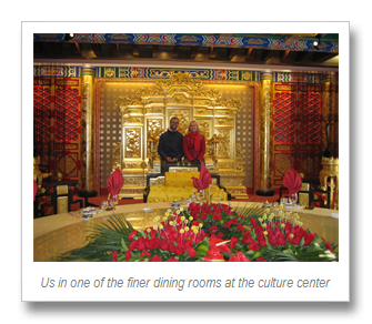 We went to a culture center that acted both as a museum displaying traditional Chinese art – paintings, sculptures and antiques – as well as a restaurant and a meeting place for the rich.  The whole place was fancy to say the least but the fanciest piece in the whole place was a nice piece of pork that had been conserved in some kind of transparent coating.  Very arty!