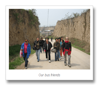 We had to take two busses to get to the tomb but on the first one we were told that the second bus wouldn’t go until thee hours later.  Fortunately we were rescued by five local ladies (one spoke English) that were also going to the tomb.  With them we took a local bus to the middle of nowhere and walked for 25 minutes until we found the tomb.  The ladies were great fun, always laughing and joking around – and really helpful and took care of us in the museum and took us back to Xi’an after the visit.  The Chinese people seem really cheerful and very helpful – even though the language is often an obstacle.