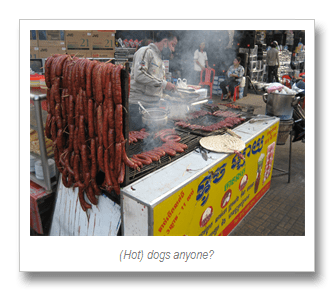 We came equipped with a map and saw that they had food in the middle of the market. We hadn’t had any breakfast so we went straight for the food section thinking that this would be a nice, cozy food court – something that reminded of a western mall. Of course we were dead wrong. The food section contained butchers with whole chickens, chopped down pork and whole fish. Since we were early the sellers were still chopping away and cleaning their products so you had to watch out not to get covered in guts and blood – it reminded me a bit of my days at the Húsavík slaughterhouse.